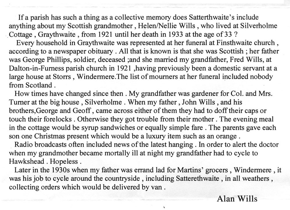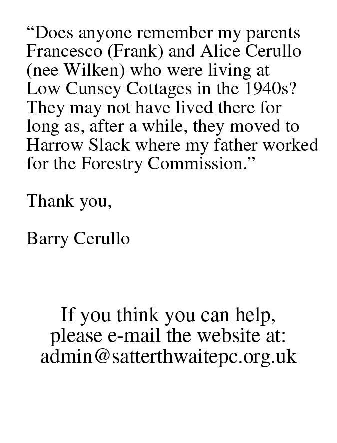 Here you can browse through posters, messages, photographs, web links and all sorts of items posted by people interested in Satterthwaite Parish...and join in! |